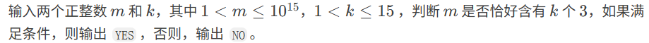 输入一行,为两个整数 m,k,中间用单个空格间隔。