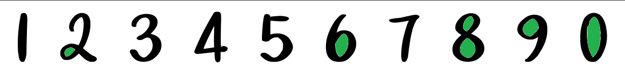 如图,在数字 2,6,9,0 中有一个零的影子,而在数字 8 中有两个零的影子。