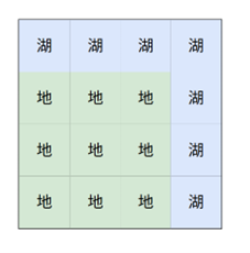 X国地理特征独特,用一个n行m列的二维网格表示。X国内有两个湖泊,其中一个湖泊在春夏水位暴涨,在秋冬水位下降;另外一个则是在秋冬水位暴涨,在春夏水位下降。一个湖泊由上下左右相邻的字符‘0’网格组成。除了湖泊的网格外,都是地面网格,地面网格都是用字符‘1’表示。