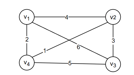 举例来说:下图中 v_2 \rightarrow v_4 \rightarrow v_1 \rightarrow v_2 是一条单调上升路径,因为每条边的权值为 1,2,4。这条路径的长度为 3。更进一步的,你可以验证下图中所有的单调上升路径的长度都不超过 3。